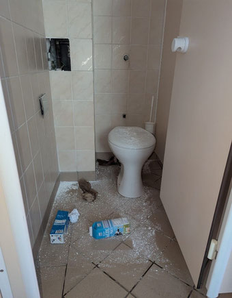 Jüngeren Schülerinnen und Schülern wurde der Zugang zum WC durch Ältere versperrt. Toilettenanlagen und Inventar wurden beschädigt und sind zum Teil nun unbrauchbar. Zum Beispiel wurden Spiegelhalterungen beschädigt, Wandfliesen mit dem Fuß abgetreten, Griffe zum Aufdrehen der Wasserhähne entfernt, die neuen kleinen Hygieneeimer in den Kabinen demoliert, die neuen WC-Papierhalterungen in den Kabinen heruntergerissen und trauriger Höhepunkt am Montag (8.9.25)...