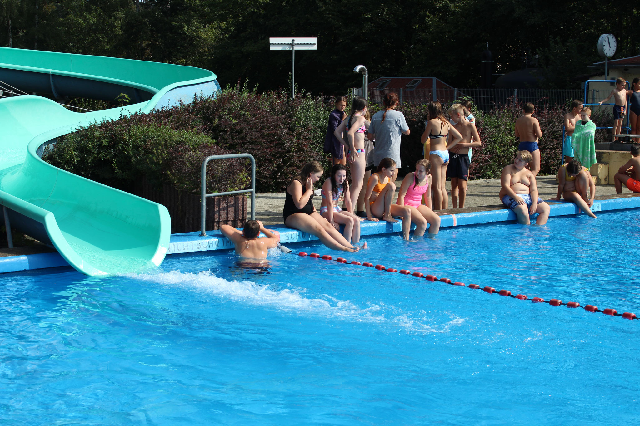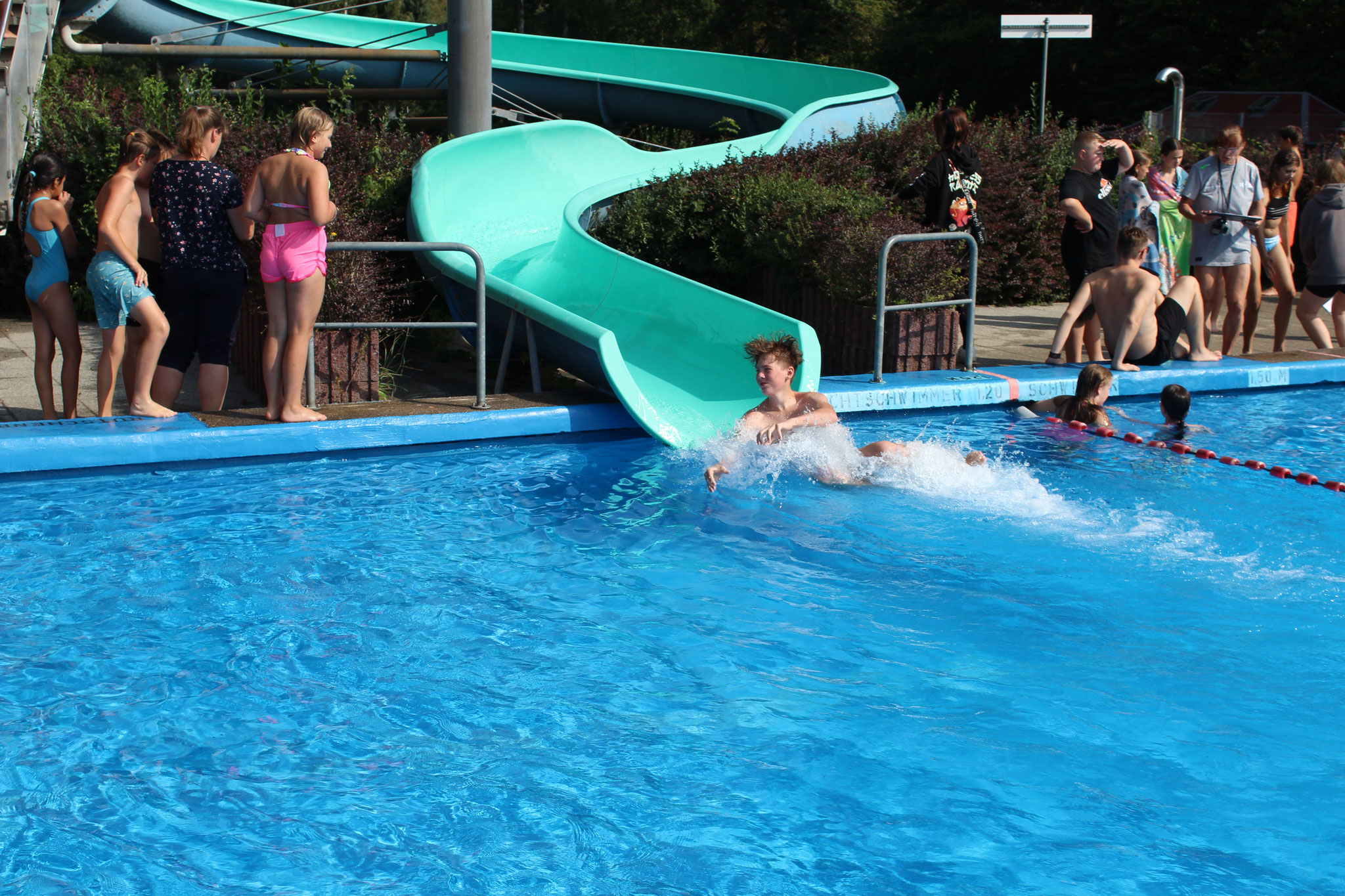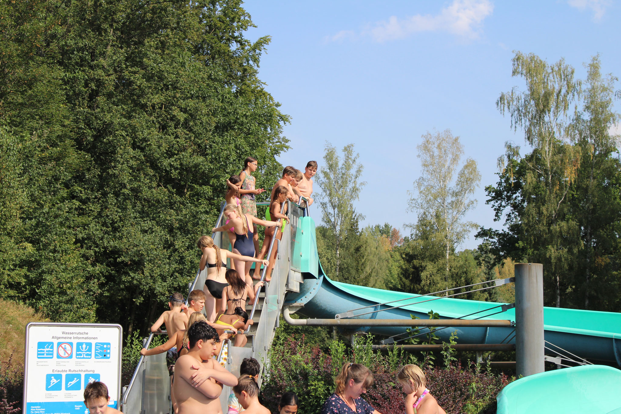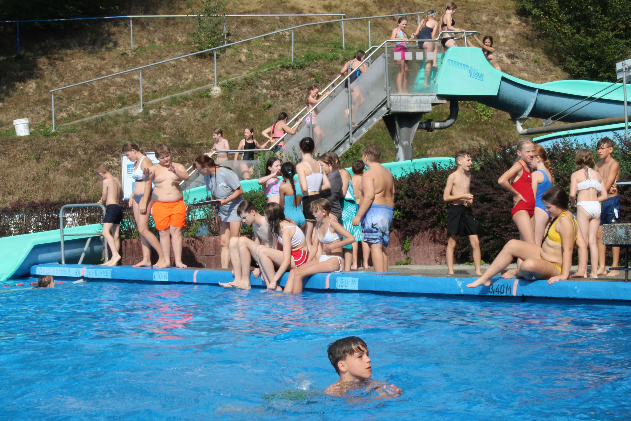 Was für ein Tag! Bei bestem Wetter wurde unser Badfest im Freibad Geringswalde nochmal zum echten Highlight vor den Sommerferien. Ob beim Wettrutschen, bei den Staffeleinheiten, beim Volleyball, Ball über die Leine oder auf Wandertour – alle kamen auf ihre Kosten. In den erstmalig durchgeführten Schwimmstaffeln holten sich die 5b und 8a den Sieg, und sogar eine Lehrerstaffel war mit am Start.