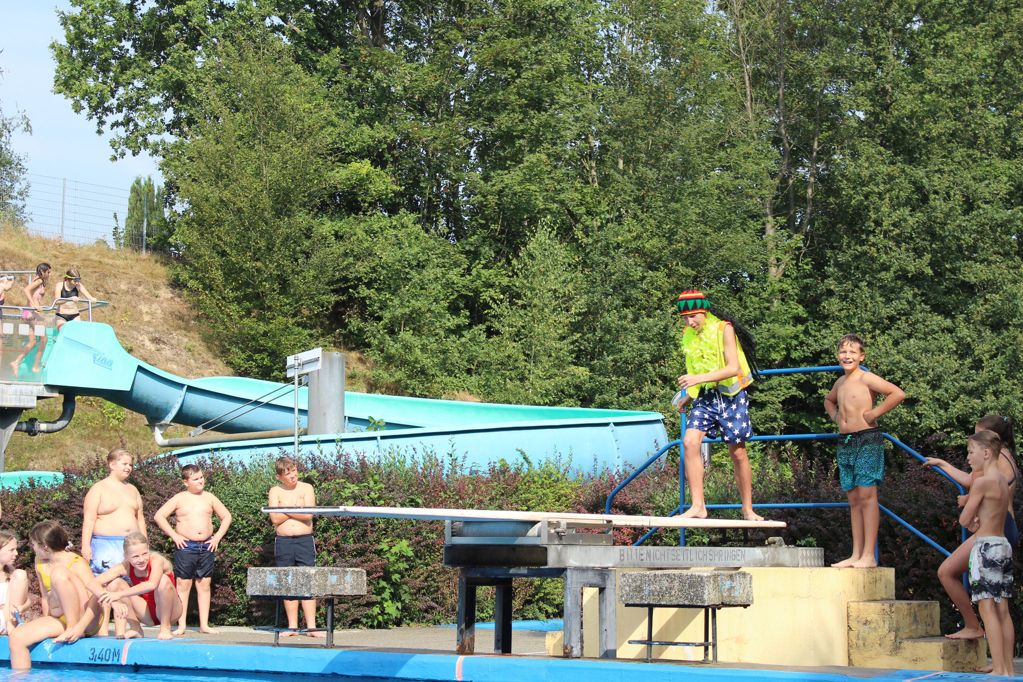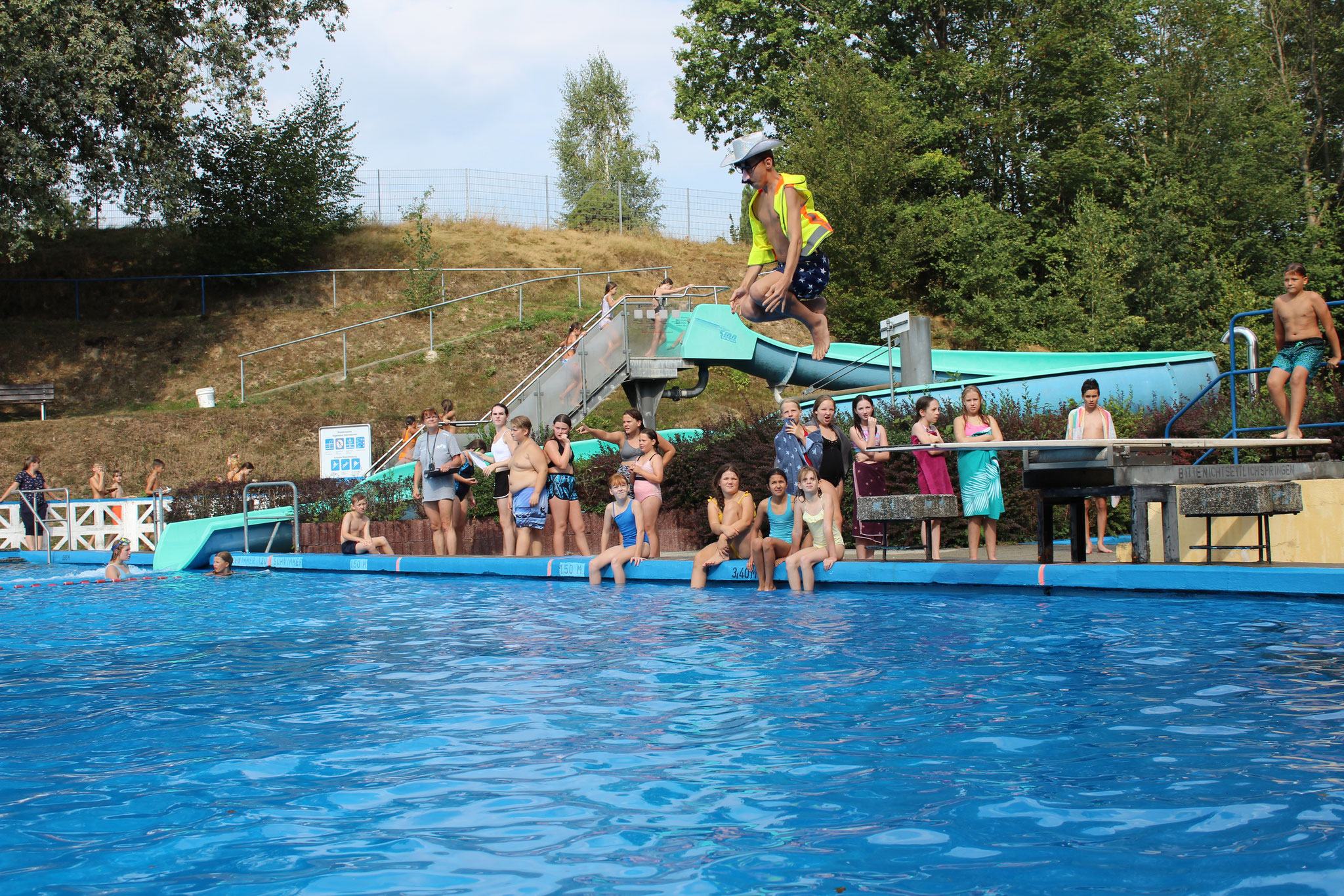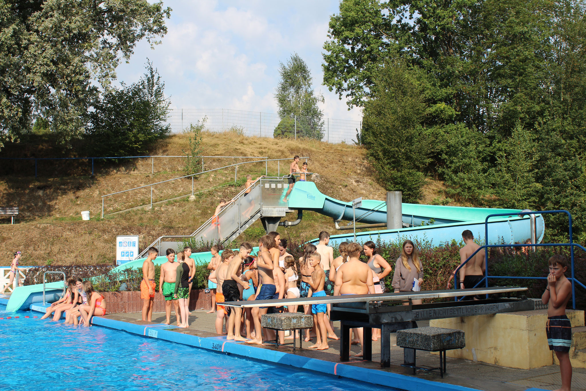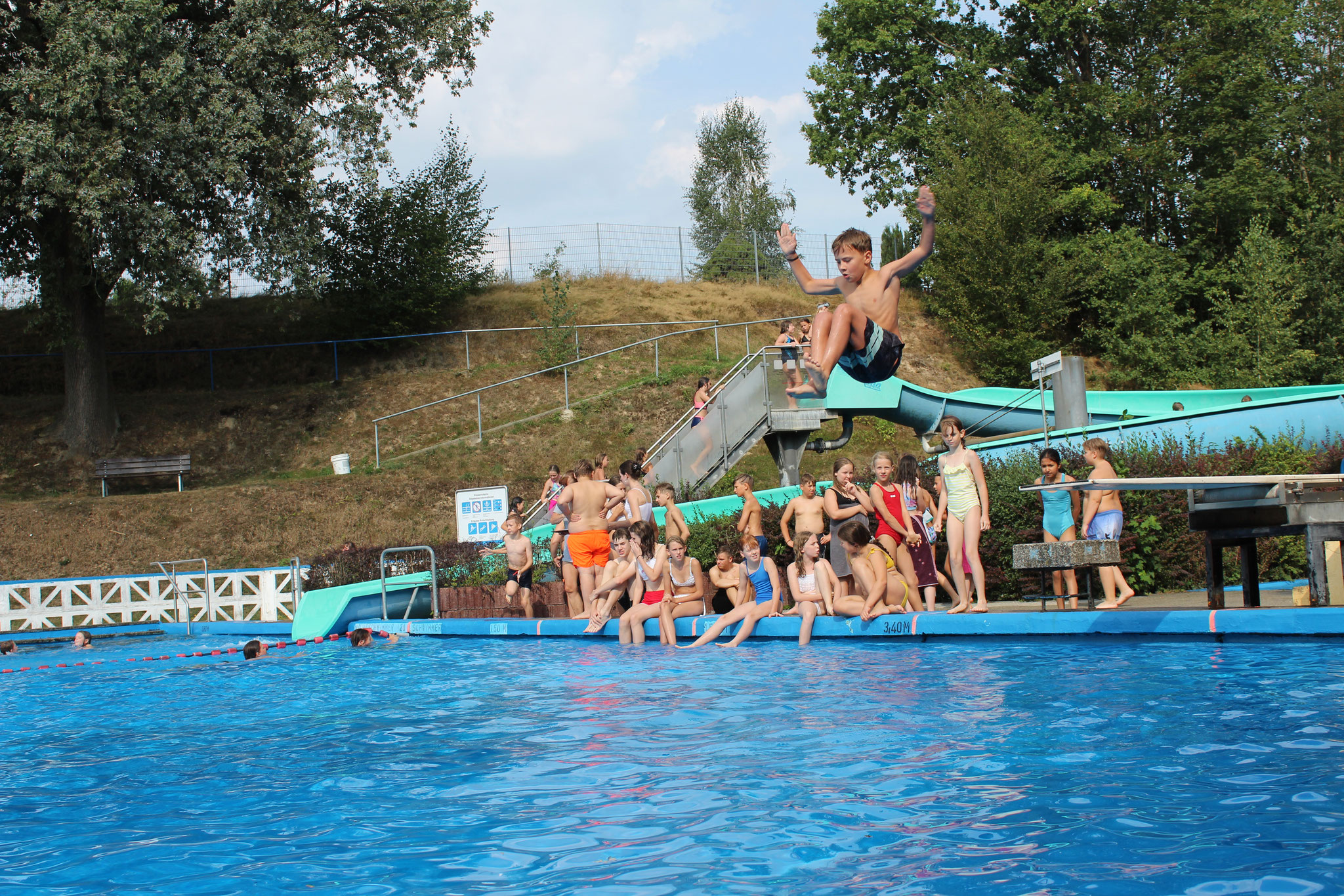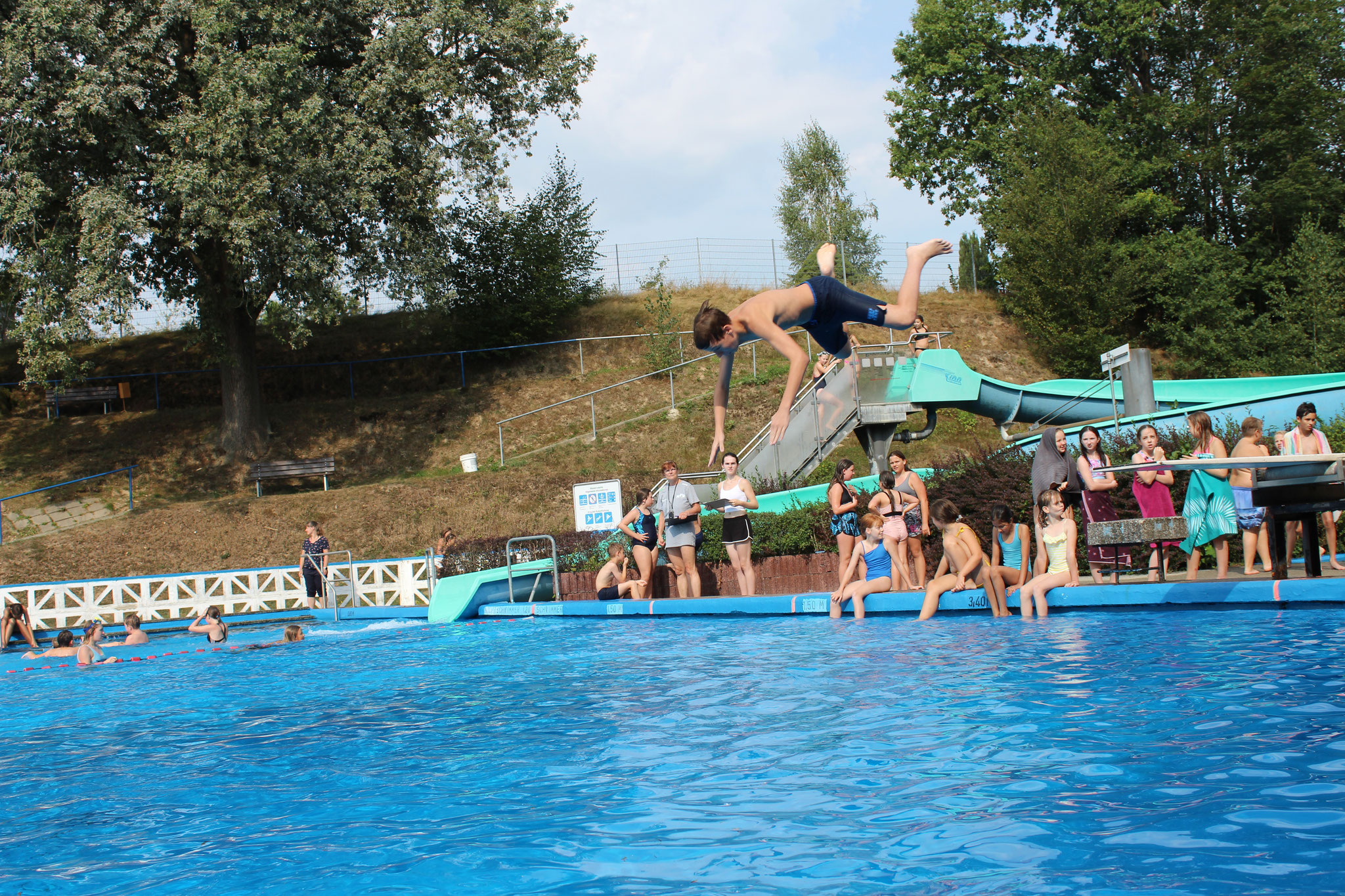 Am 30. August 2024 war es wieder soweit: Das traditionelle Badfest der Pestalozzi-Oberschule Hartha bot den Schülerinnen und Schülern im Geringswalder Freibad ein buntes Programm. Bei strahlendem Sonnenschein und bester Laune konnten sich die Kinder an sportlichen und unterhaltsamen Aktivitäten und einer netten Abkühlung erfreuen.