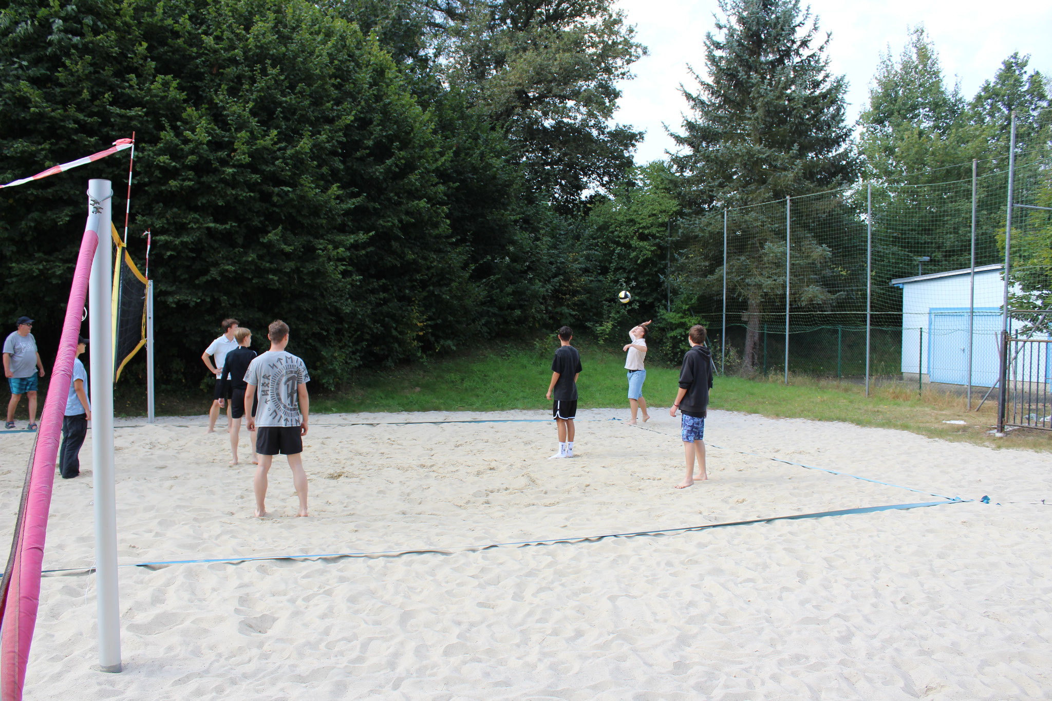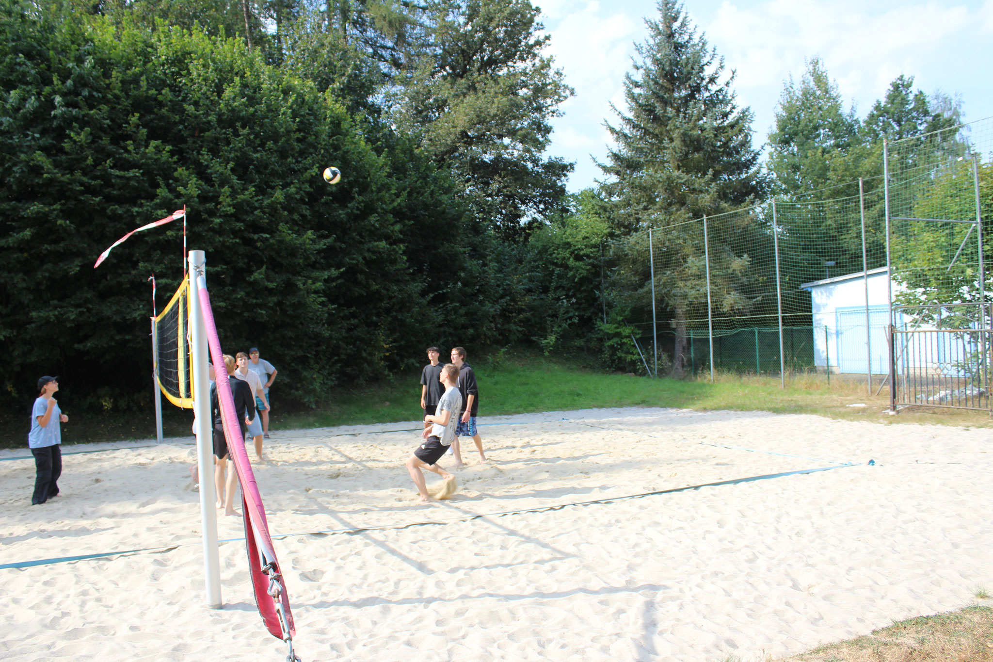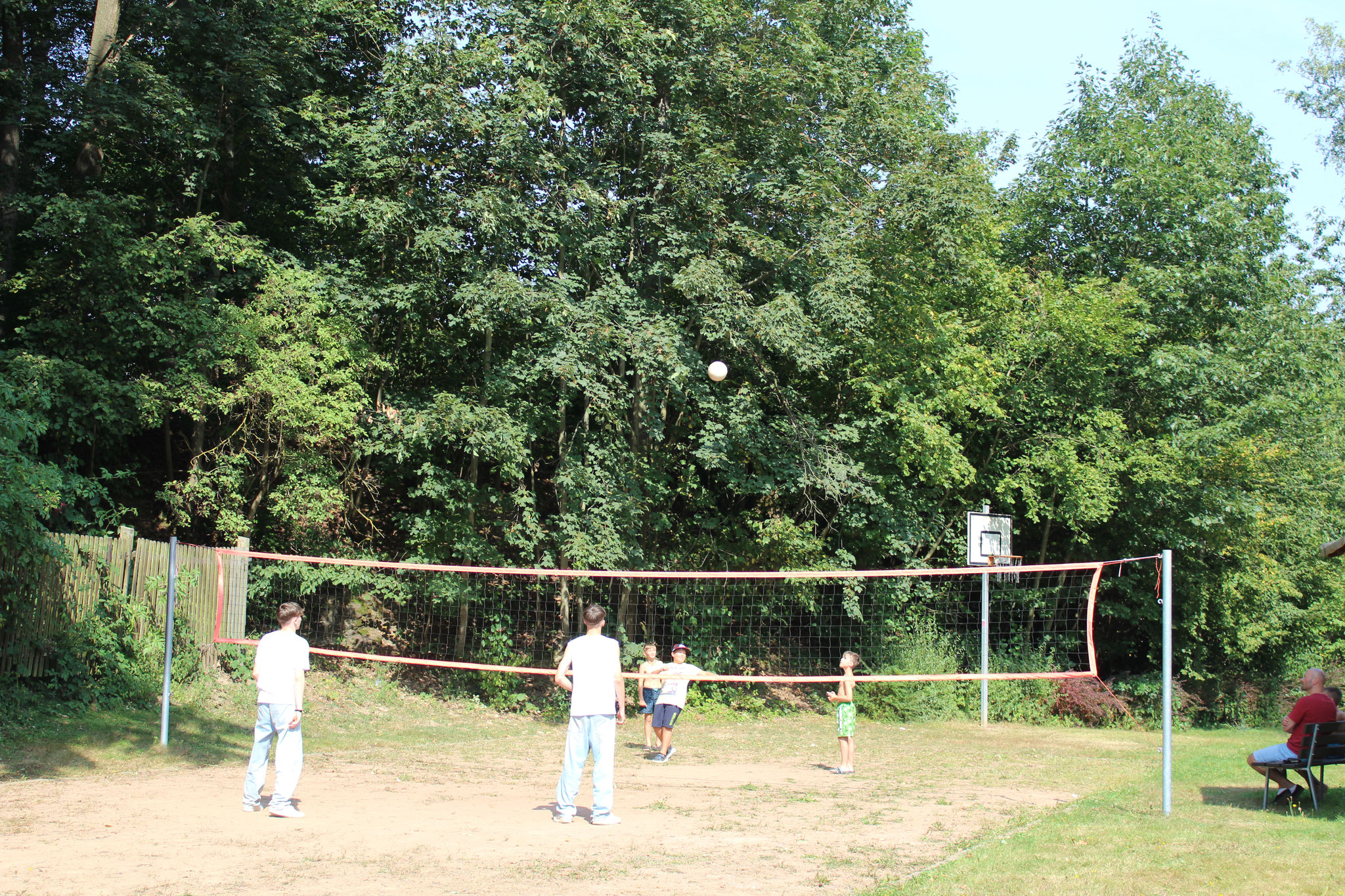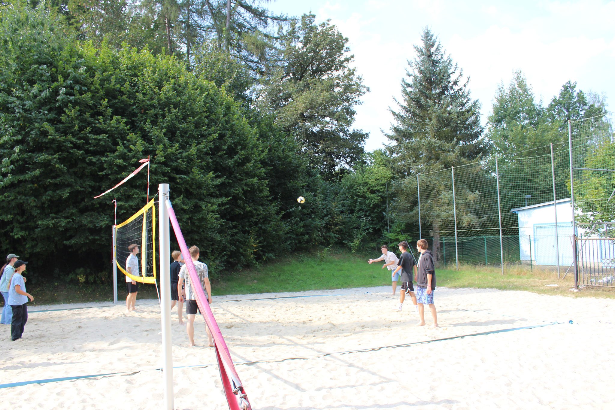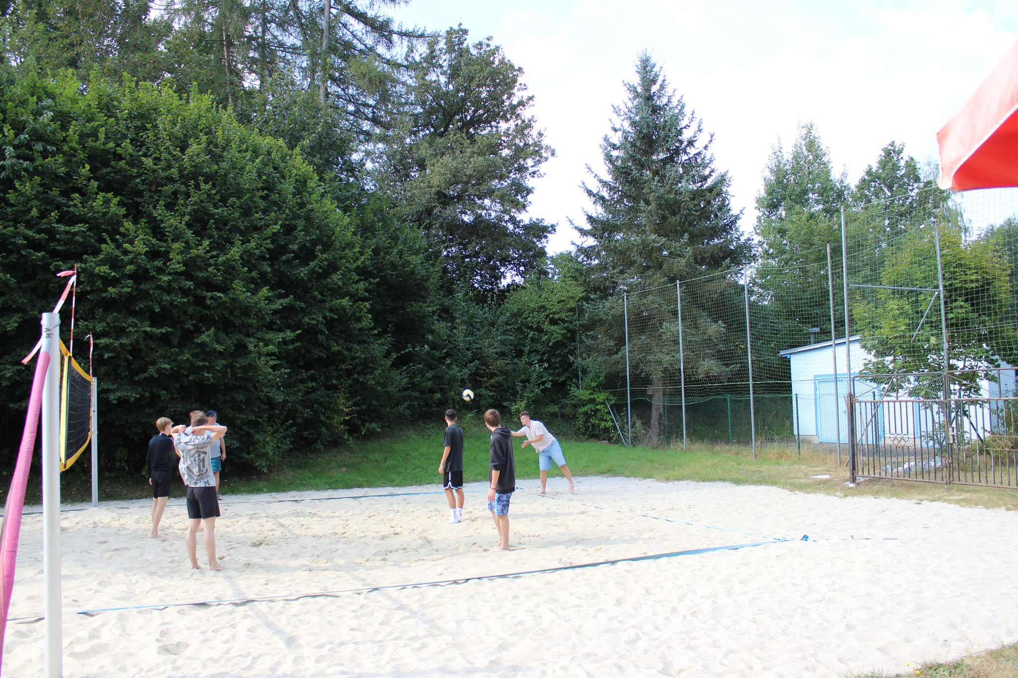 Doch auch an Land kamen die sportlichen Aktivitäten nicht zu kurz. Bei spannenden Beachvolleyball-Spielen und dem beliebten „Ball über die Leine“ konnten sich die Teams austoben. Für alle Wanderfreunde gab es eine Wanderung zur Leipziger Hütte und zum Geringswalder „König-Friedrich-August-Turm“, die von vielen begeistert genutzt wurde.