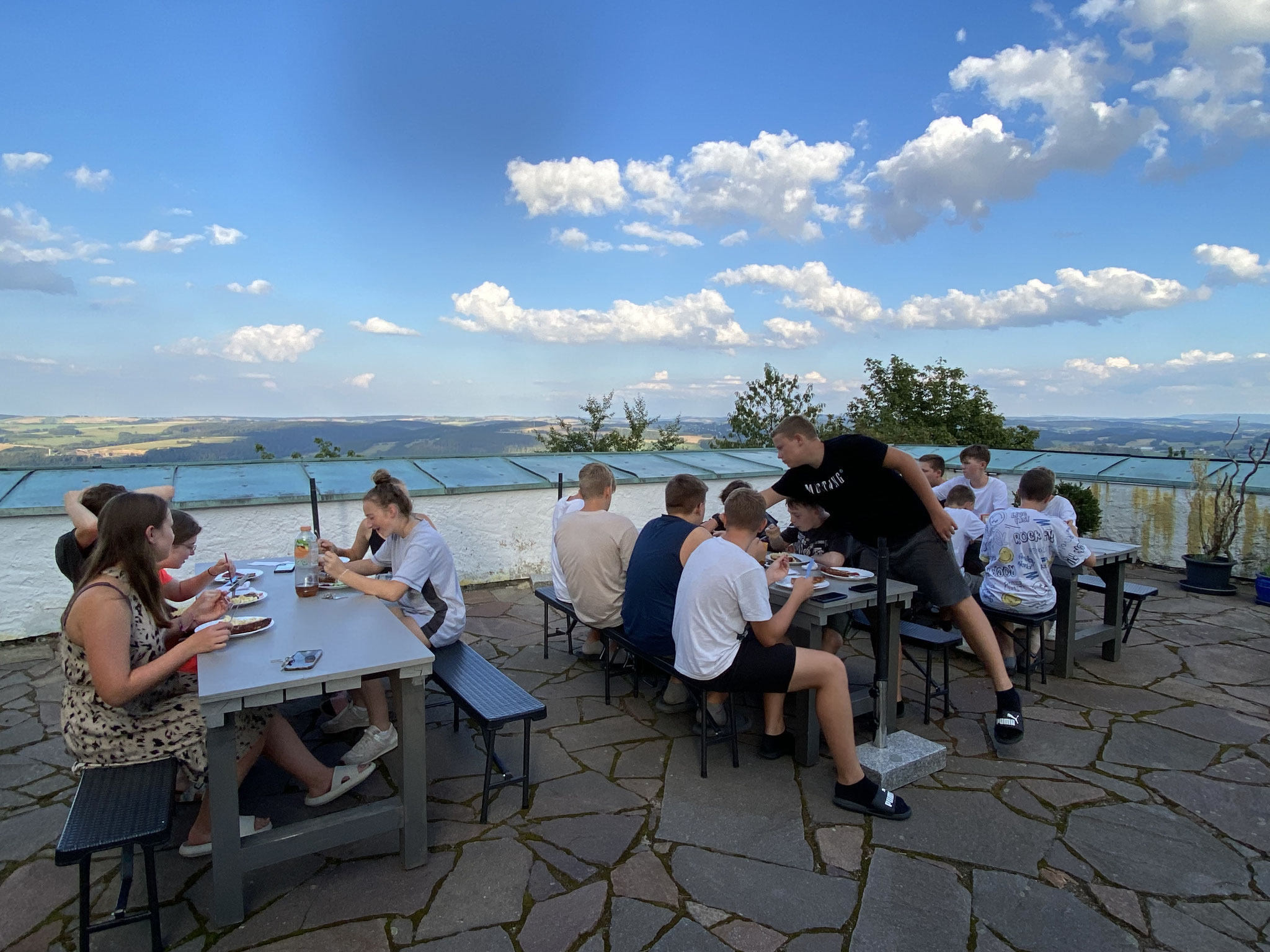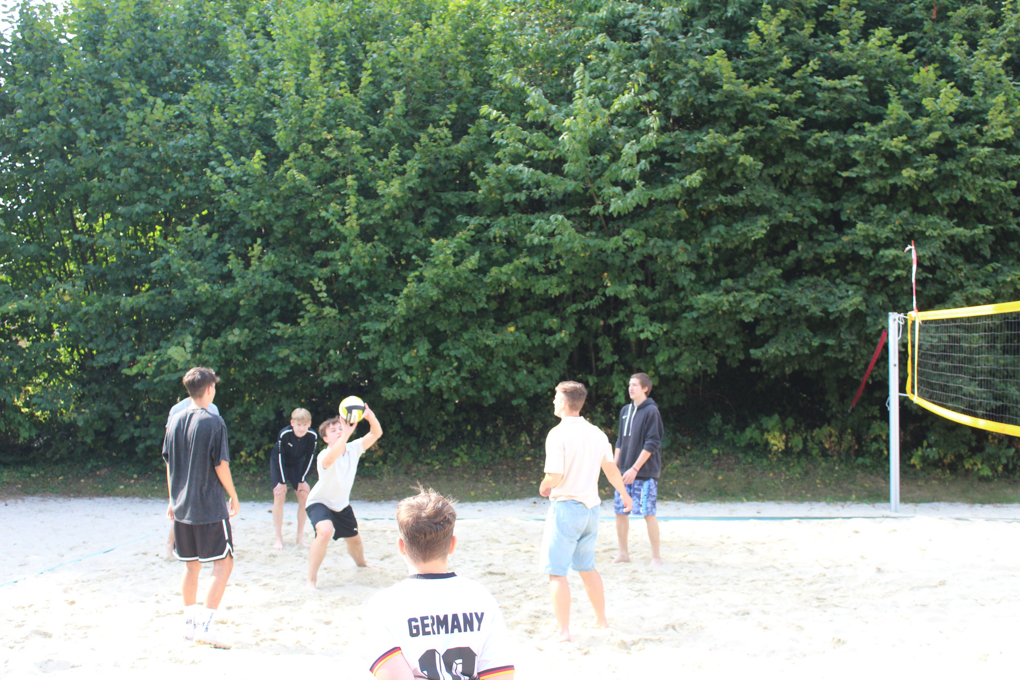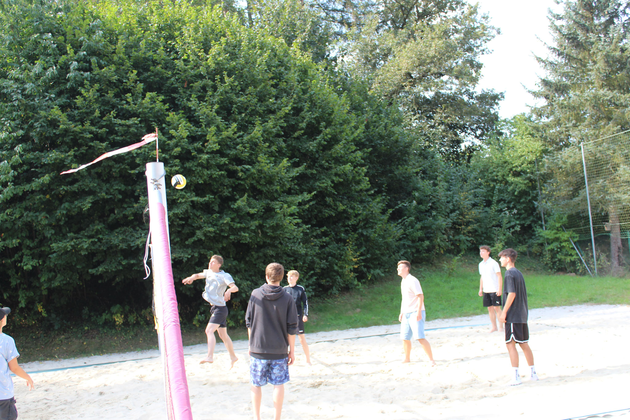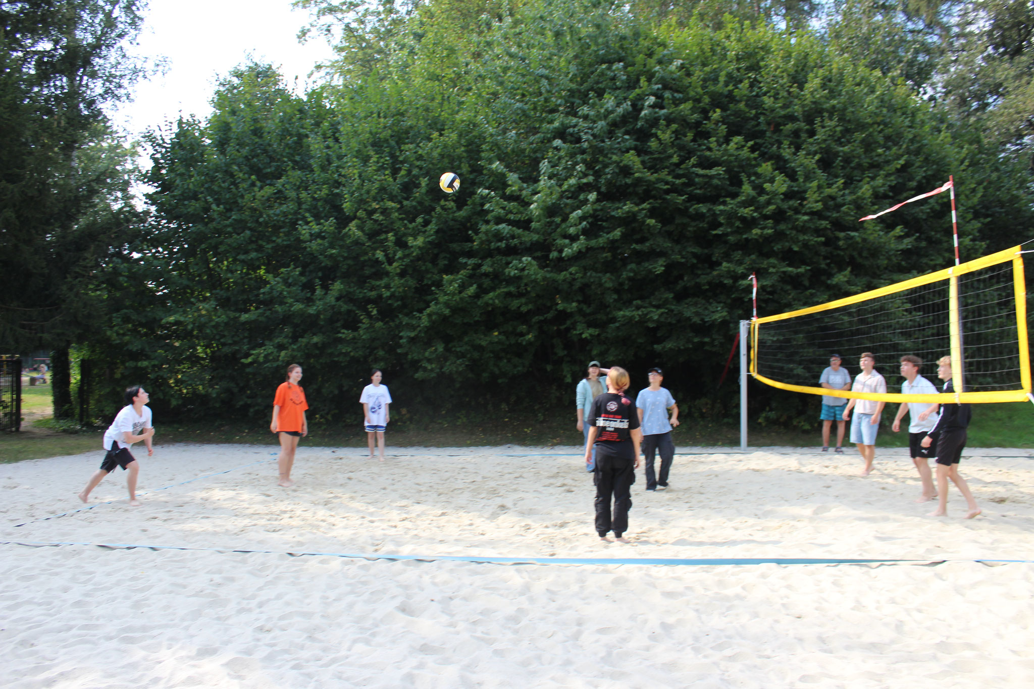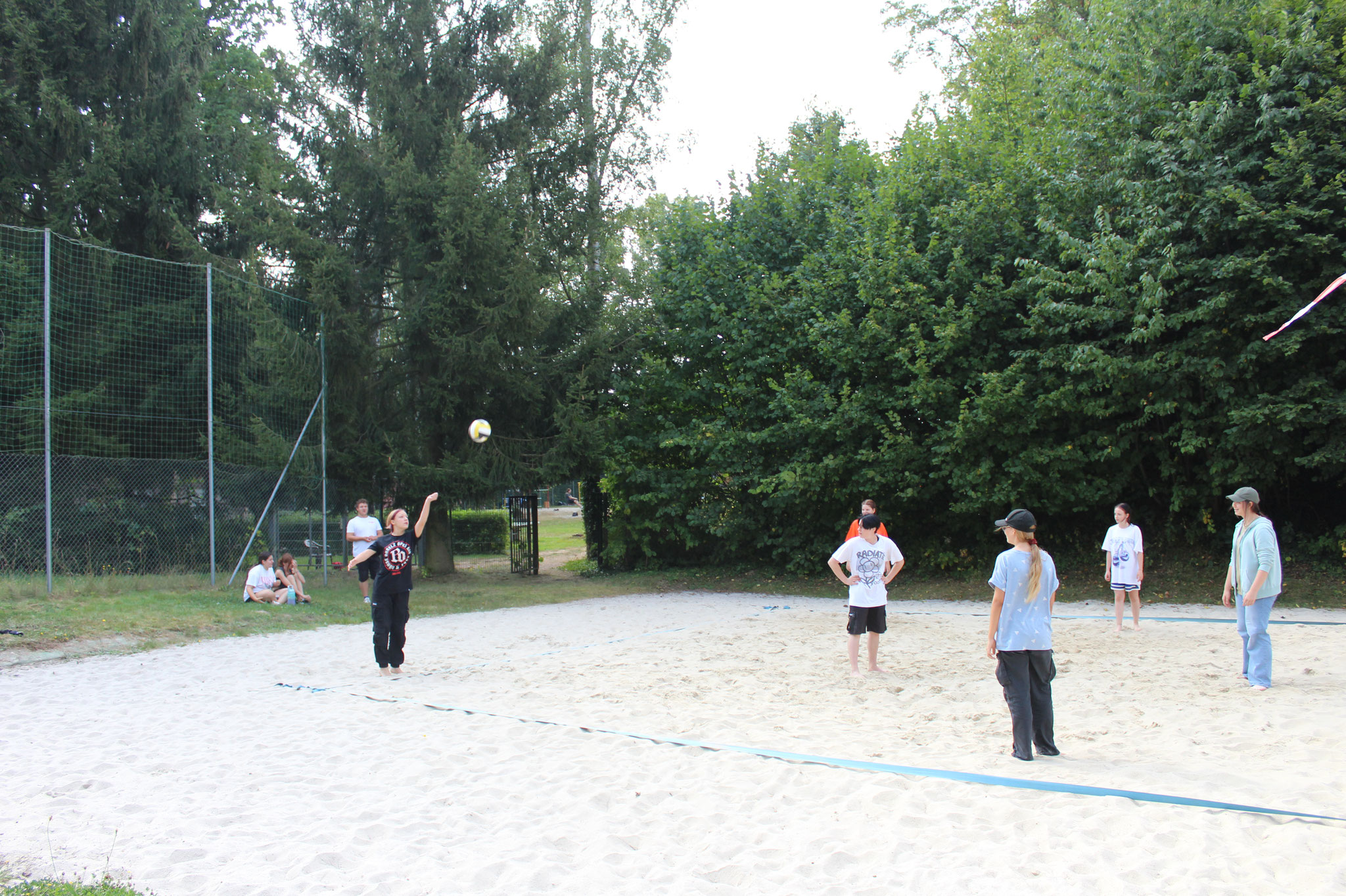 Doch auch an Land kamen die sportlichen Aktivitäten nicht zu kurz. Bei spannenden Beachvolleyball-Spielen und dem beliebten „Ball über die Leine“ konnten sich die Teams austoben. Für alle Wanderfreunde gab es eine Wanderung zur Leipziger Hütte und zum Geringswalder „König-Friedrich-August-Turm“, die von vielen begeistert genutzt wurde.