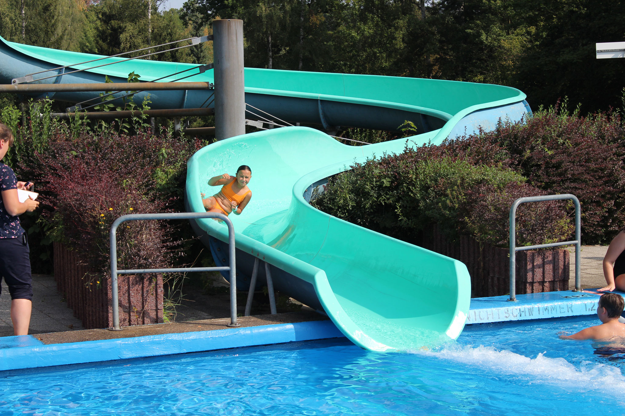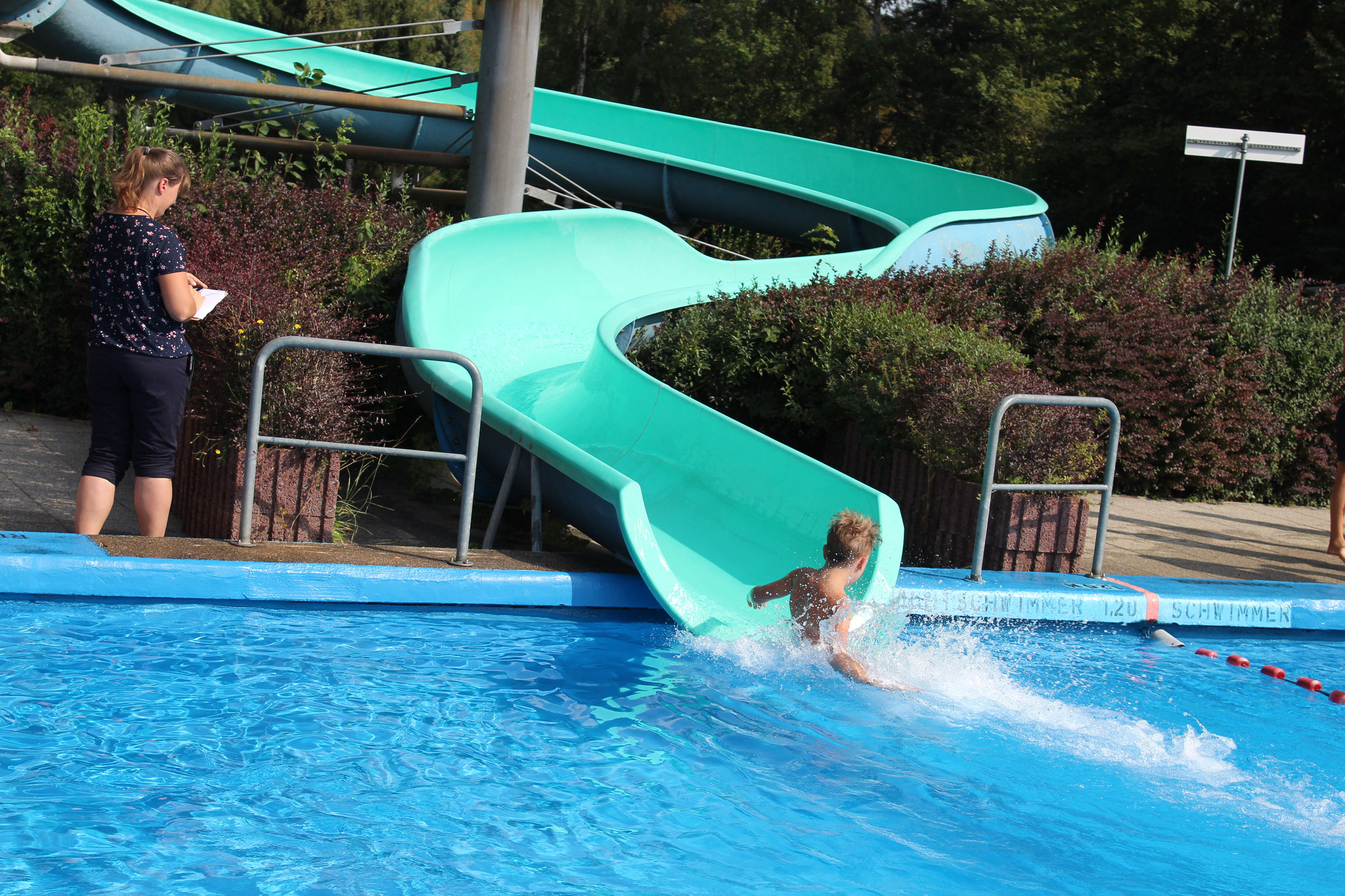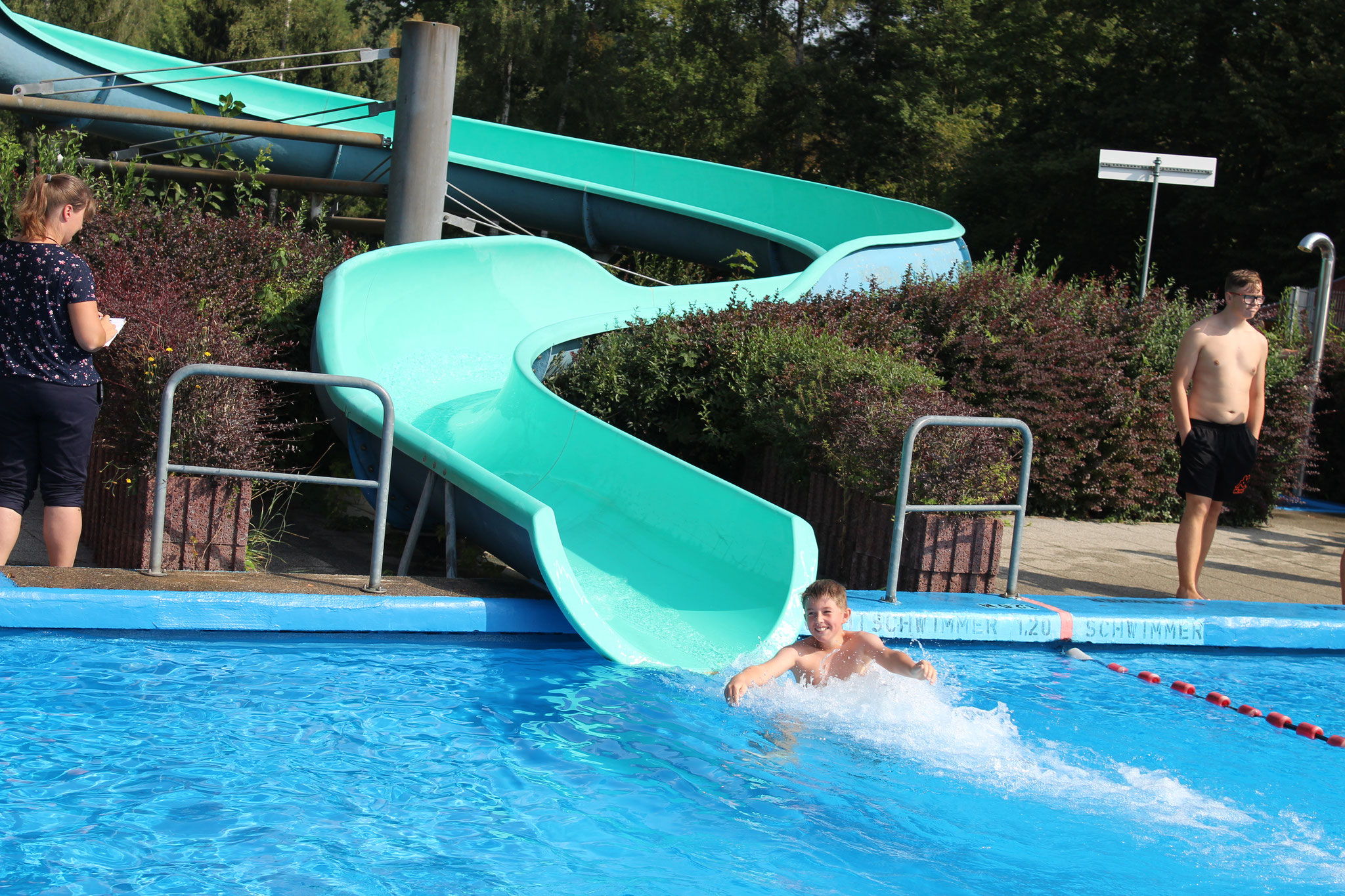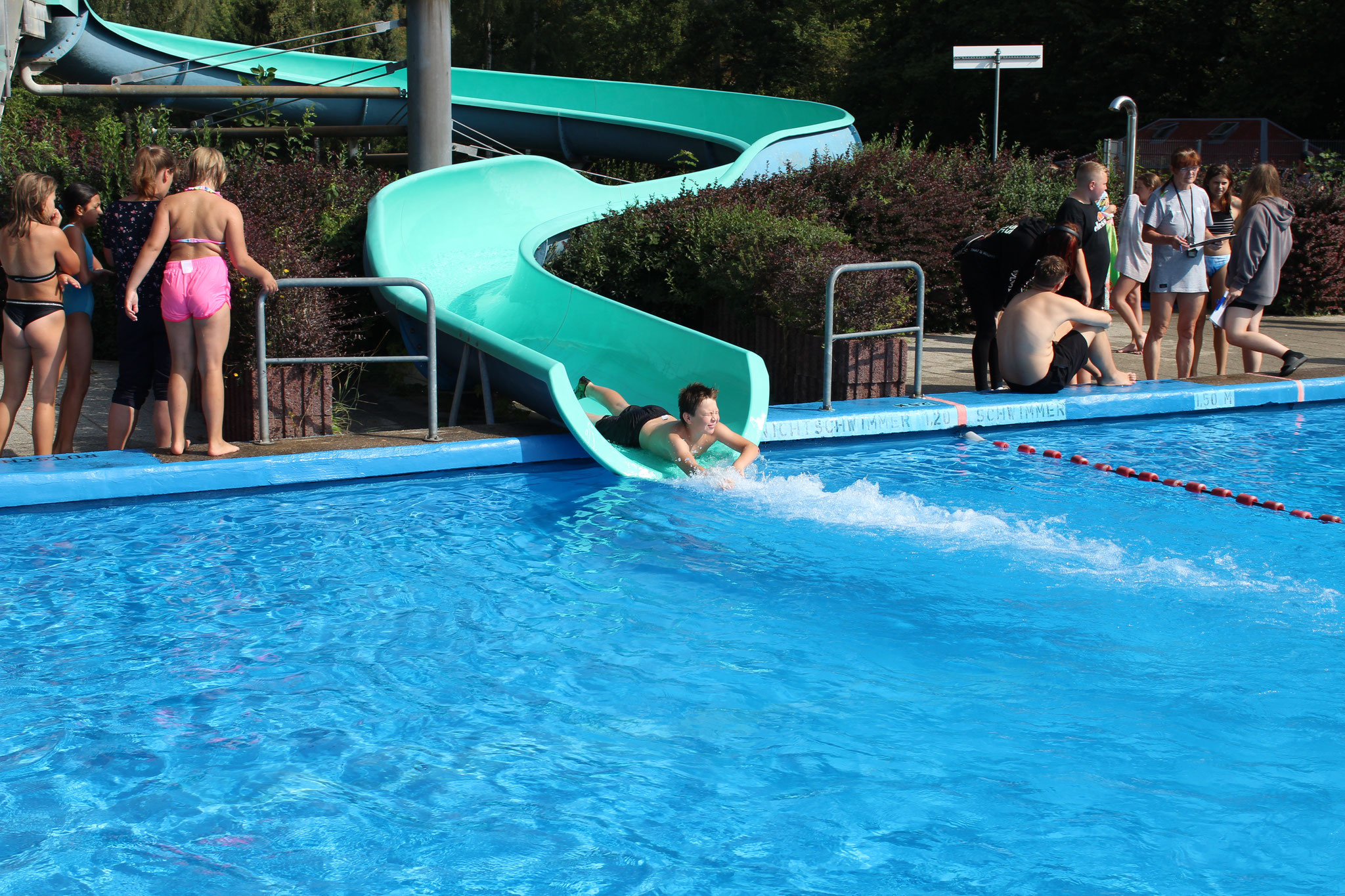 Beim Wettrutschen war Paul Michael mit 5,45 Sekunden bei den Jungen und Holly Kluge mit 6,02 Sekunden bei den Mädchen die Schnellsten in der Röhre. Glückwunsch an alle weiteren Jahrgangssieger!