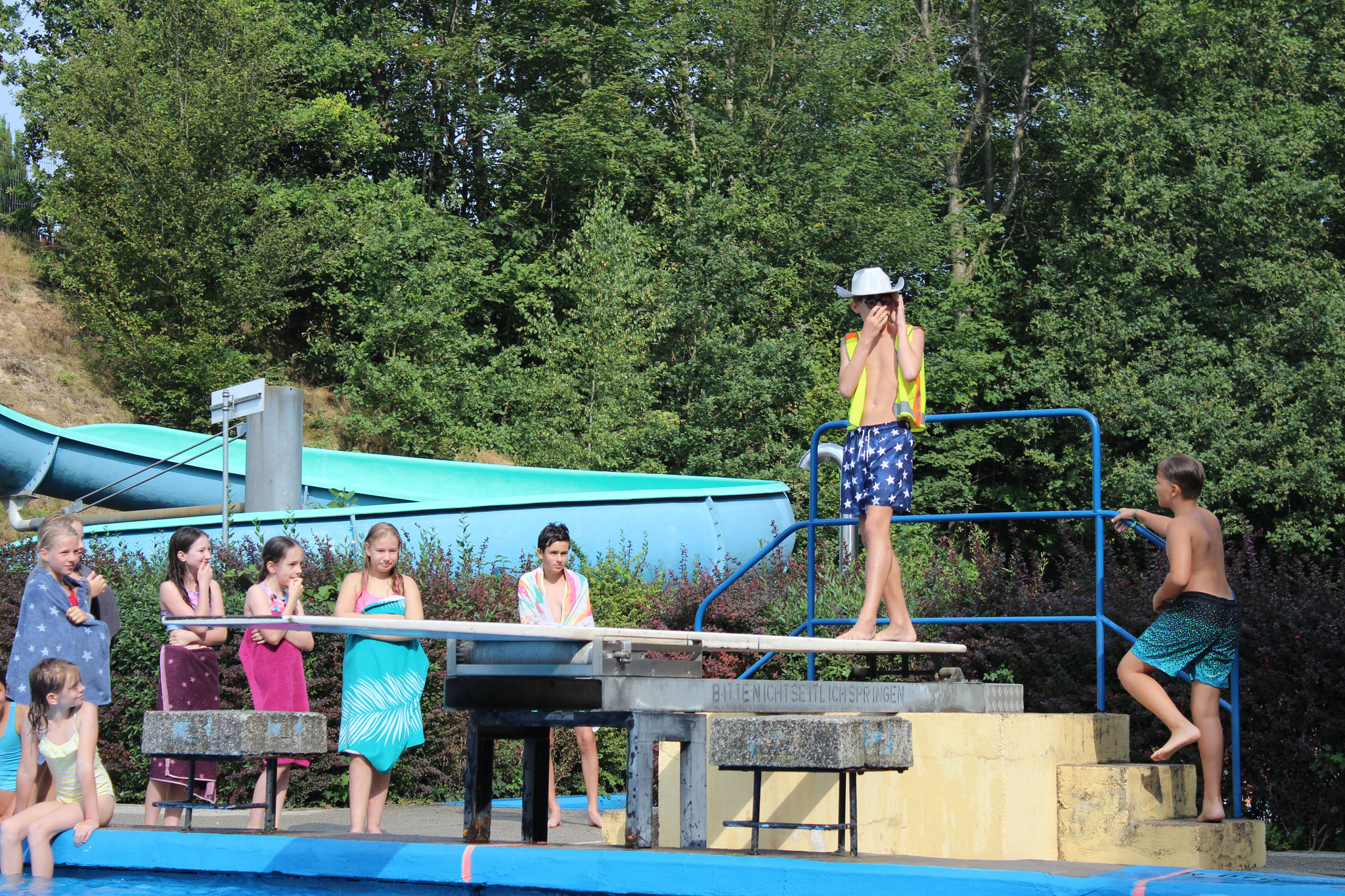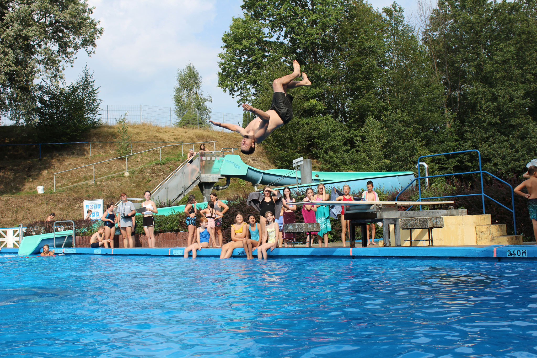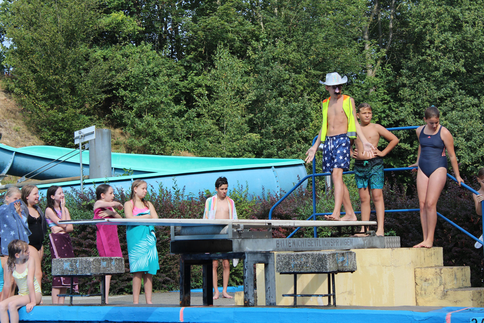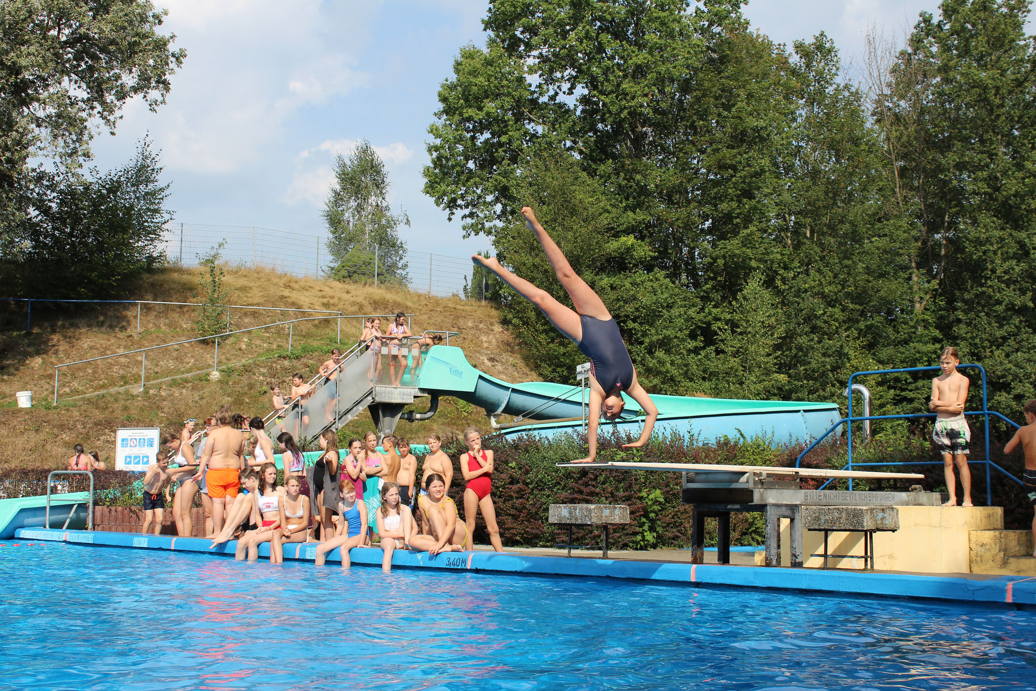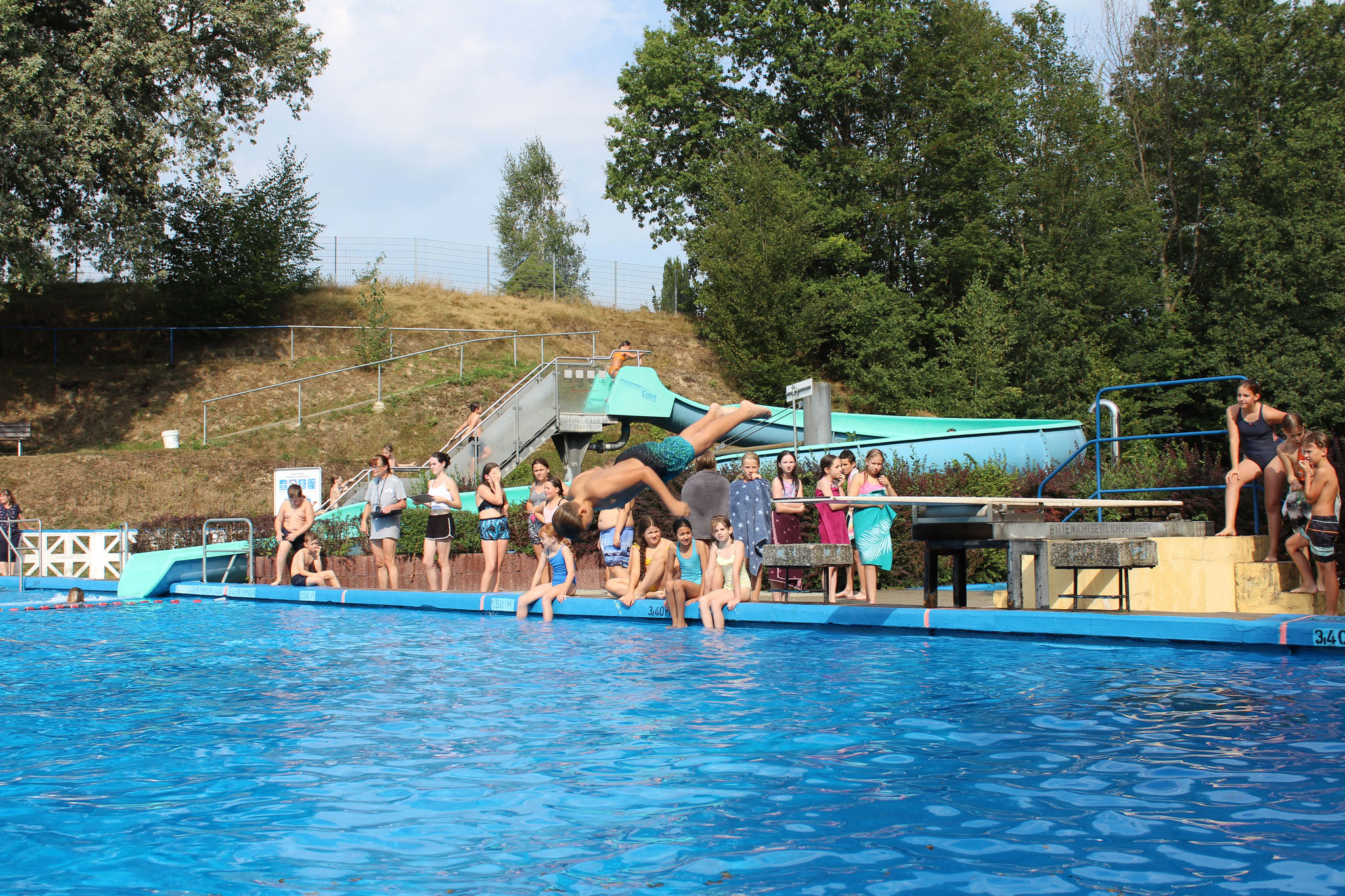 An den Schwimmstationen beeindruckten viele Schülerinnen und Schüler mit ihrem Können. Besonders stolz sind wir auf die zahlreichen Kinder, die erfolgreich die Schwimmstufe Bronze oder Silber erlangten. Auch beim Streckentauchen gab es nahezu rekordverdächtige Ergebnisse, die für Begeisterung sorgten. Das Wettrutschen und Kunstspringen brachten zusätzlich viel Freude für die Teilnehmenden selbst, als auch für die Zuschauer.