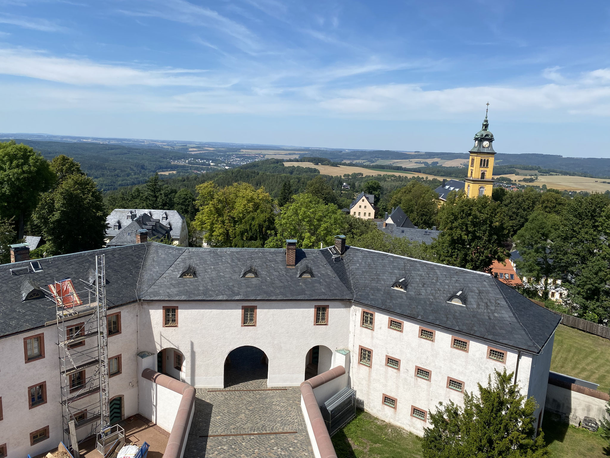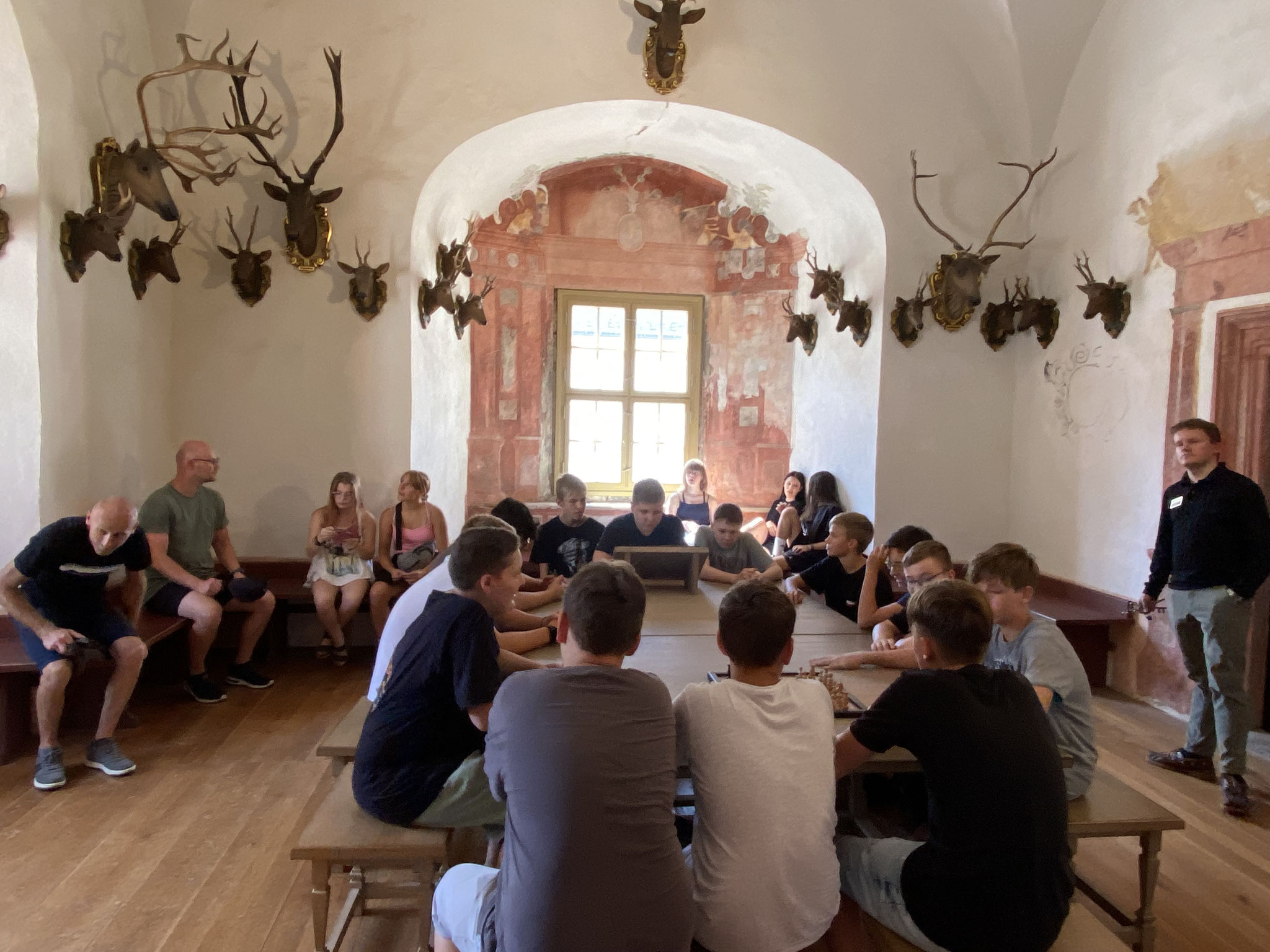 Am ersten Tag besuchten wir das Schloss und nahmen an einer Führung teil. Danach machten wir eine Stadtrallye, bevor wir zum Netto gingen. Am zweiten Tag wanderten wir vom Schloss nach Erdmannsdorf ins Freibad. Nachdem wir uns dort erfrischt hatten, fuhren wir mit der Drahtseilbahn zurück zum Schloss. Am nächsten Tag übten wir das Bogenschießen. Am letzten Tag unternahmen wir eine ausgedehnte Wanderung, und zum Abendessen gab es Gegrilltes.