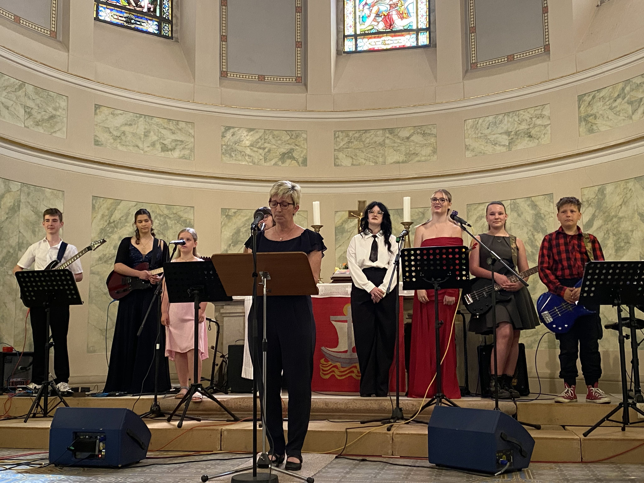 Die Schülerband, unter Leitung von Musiklehrerin Frau Neumann, gestaltete das musikalische Programm. Der Kantor der Harthaer Stadtkirche, Herr Fromm, begleitete auf der Orgel.