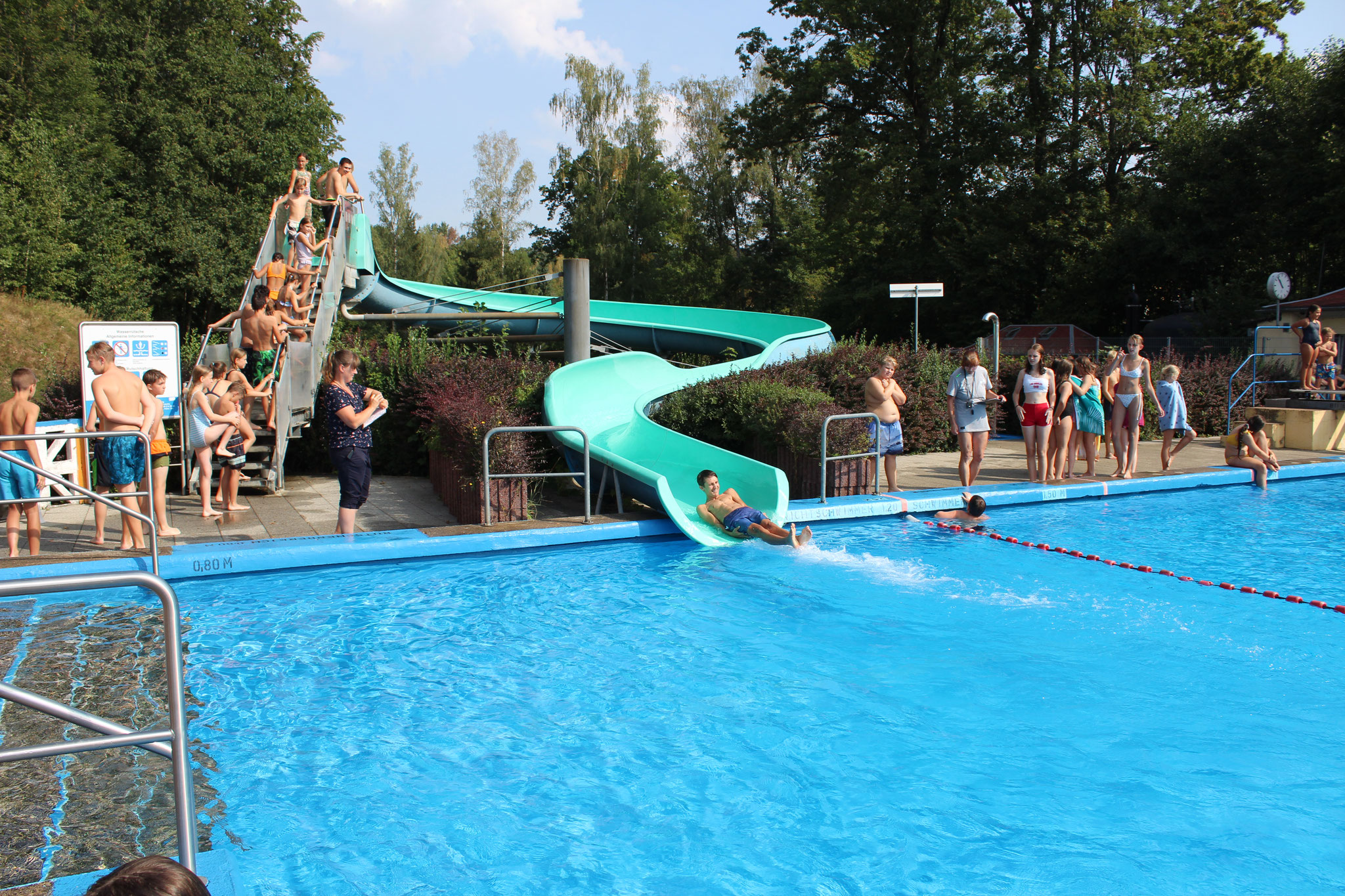 Der Kiosk hatte alles brachte ausreichend Verpflegung und die Technikcrew mit Herrn Taffel brachte mit bekannter Musik Stimmung in das Bad. Die Johanniter waren überall mit dabei – danke dafür!