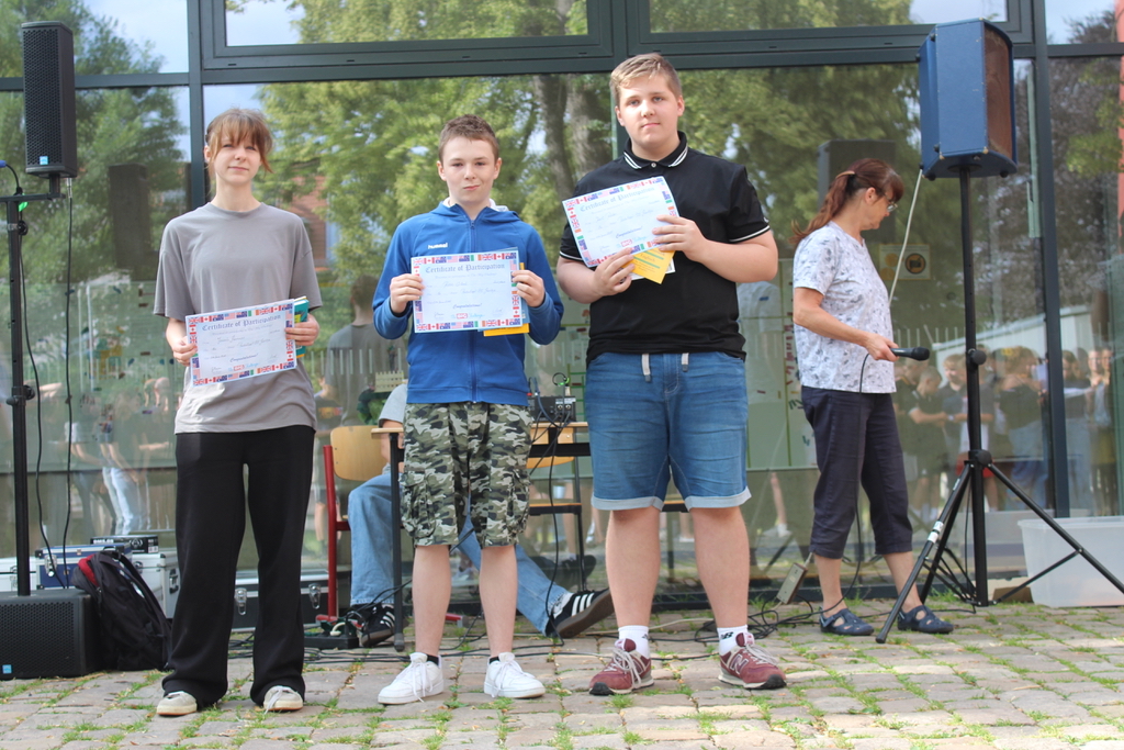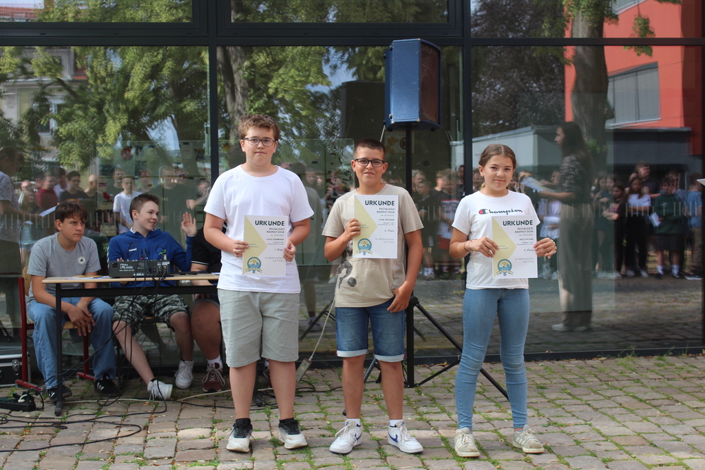 Schulsiegerinnen wurden Laura und Fiona aus der 5. Klasse. Silber erknobelten sich Alwin aus der 6. Klasse und Johannes aus der 7. Bronze erkämpfte sich Luca aus der 6. Klasse.
